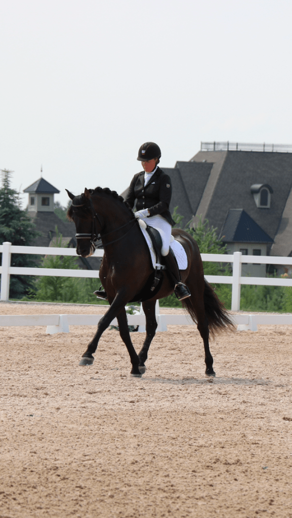 As a true testament to her dedication to skill development, she has trained all her upper-level horses from the beginning – including her beloved horse Lumiere who took her to the International dressage stage representing Canada in the Nations Cup.
